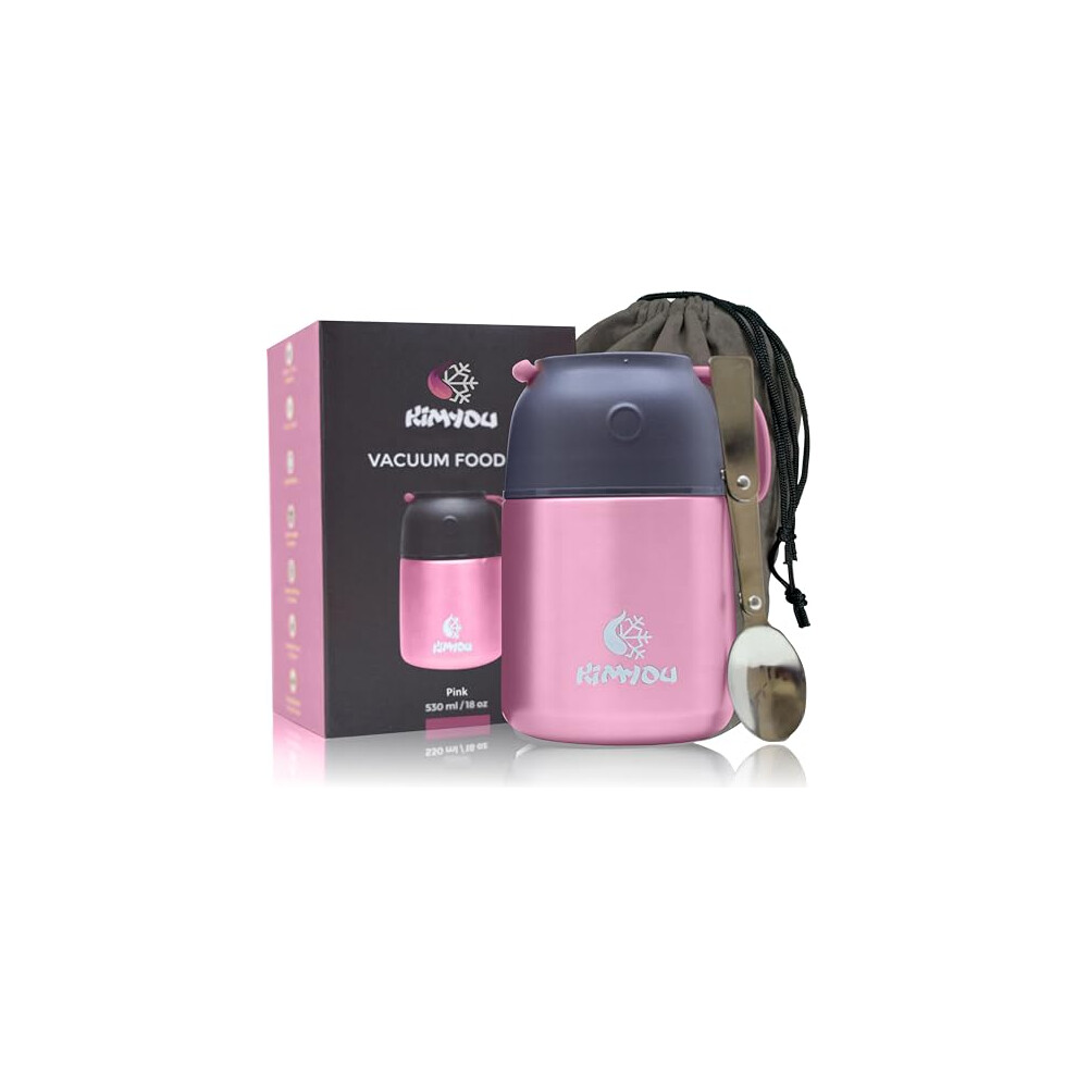 Kimyou Food Flask 530 | Premium Stainless Steel Vacuum Insulated Thermal Food Container | Food flasks for hot Food | Soup Flask | Soup containers | Vacuum flasks with Bag, Brush and Spoon Pink