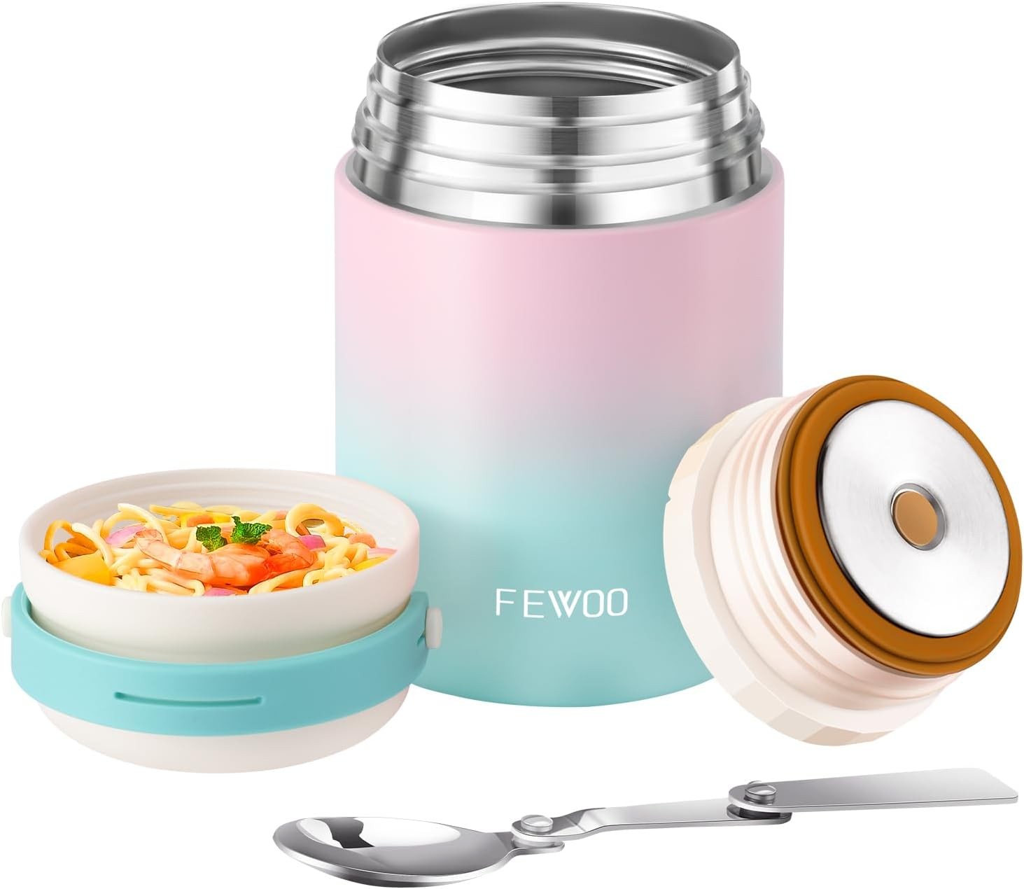 FEWOO Soup Flask, 600ml Vacuum Insulated Food Jar for Hot Cold Food, Leak Proof