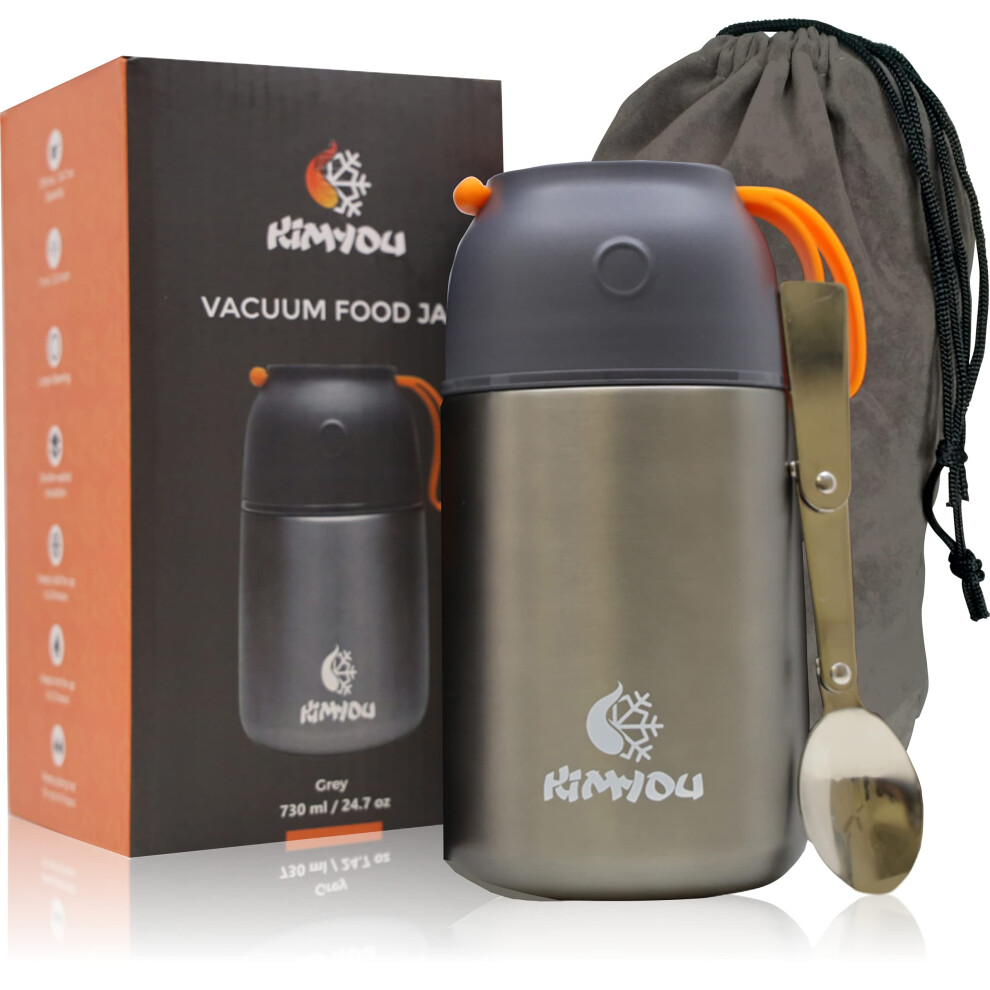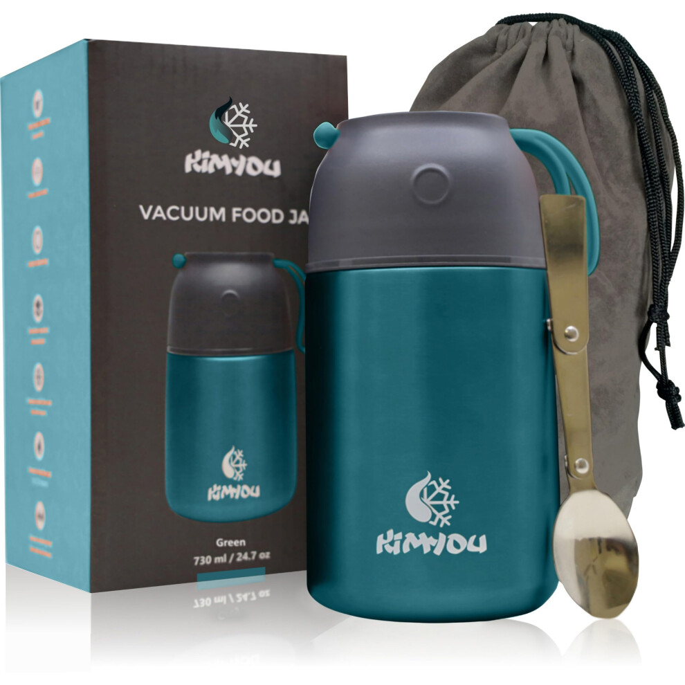 Blockhütte Food Flasks for Hot Food 730ml Stainless Steel | Adults Thermal Lunch Box with Spoon | Vacuum Insulated Container for 14h Hot Meals | Soup Flask BPA Free - Carry Bag with Spoon Pocket