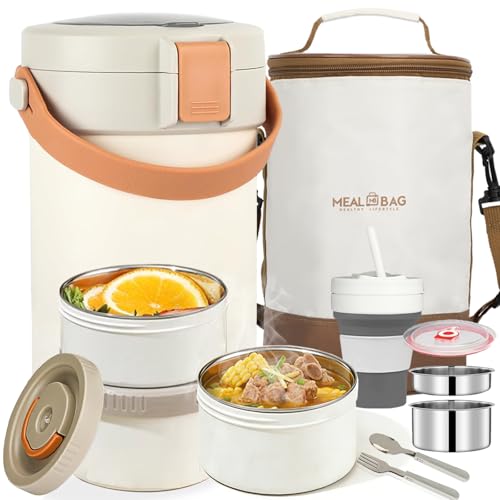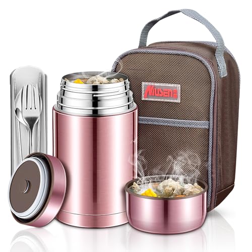 Thermal Food Flask, Soup Flask with Spoon, 800ml Double Walled Stainless Steel Vacuum Insulated Food Jars for Hot/Cold Food, Leak Proof Soup Containers for Kids/Adults, with Tote Bag for School Office