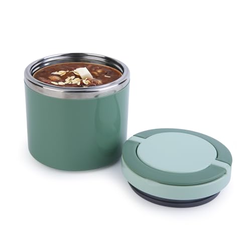 Soup Flask, 400ml Vacuum Insulated Food Jar for Hot Cold Food, Leak Proof Soup Containers for Kids and Adults (Green)