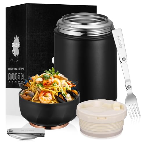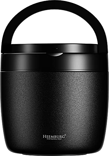 Heemburg Thermal Food Flask Jar Lunch Box Stainless Steel Insulated Double Wall Thermo Container for Meals, Soup or Fruit, for Office and Outdoors (Black)