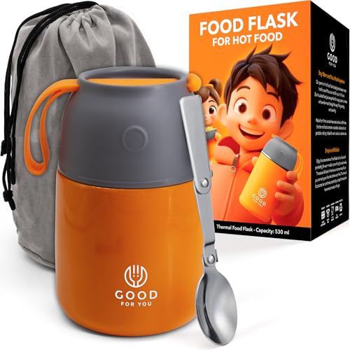 GOOD FOR YOU - Thermal Food flasks for hot food, Soup containers, ideal as a thermal lunch box, soup flask or food warmer lunch box - Stainless Steel insulated hot food flask - Orange