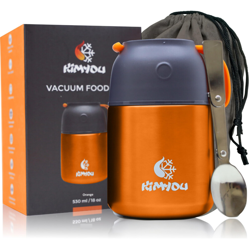 Khobisoft Food Flask With Folding Spoon, 600ml (20oz) Stainless Steel Jar for Hot and Cold Meals Double Walled Soup Flask Leakproof Food Jar Soup