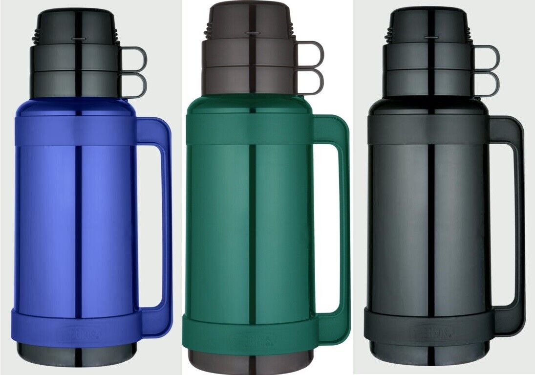 1 Thermos Mondial Glass Vacuum Insulated Flask Travel Drink Soup Flask 2 Cups 1L