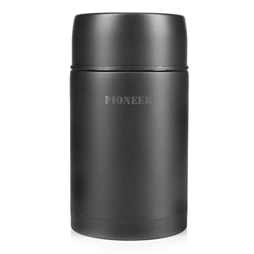 Pioneer Vacuum Insulated Leakproof Soup/Food Flask, 8 Hours Hot 24 Hours Cold, Black, 1000 ml