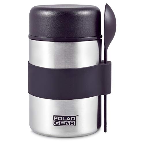 Polar Gear Insulated Food Flasks For Hot Food – Triple Layer Stainless Steel Hot Food Flask With Spoon – Keep Meals & Drinks Hot for 6 Hours & Cold for 6 Hours – Soup Flask For Work, School - Black