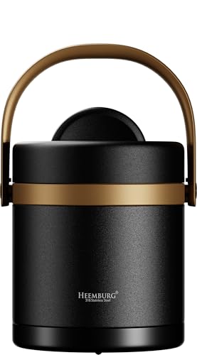 Heemburg Thermal Food flask Lunch Container, Insulated Jar, Stainless Steel Thermo Lunchbox for Meals, Soup, Fruit, for Office and Outdoor Use. (Black, 2L)