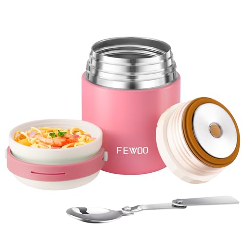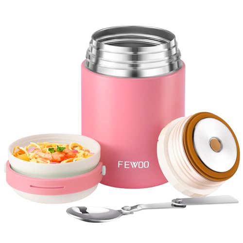 Soup Flask, 600ml Vacuum Insulated Food Jar for Hot Cold Food, Leak Proof Soup Containers for Kids and Adults (Pink)