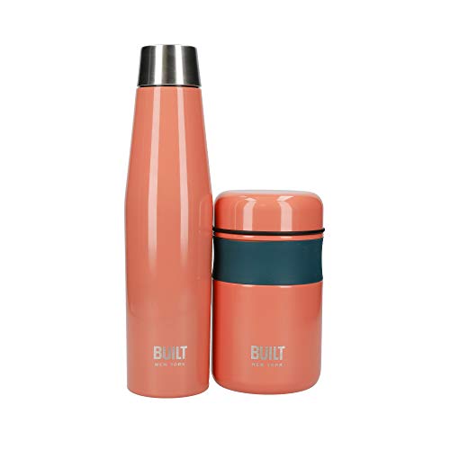 Built Perfect Seal Vacuum Insulated Water Bottle, Stainless Steel, 540 ml + Double Wall Vacuum Insulated Soup Flask for Hot and Cold Foods, Stainless Steel, Orange, 490 ml