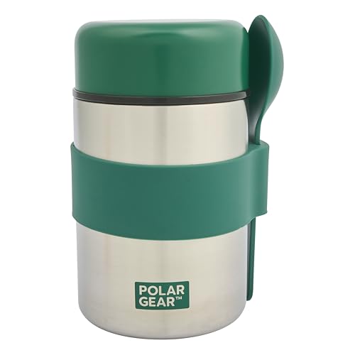 Polar Gear Insulated Food Flask – Triple Layer Stainless Steel Soup & Food Container With Spoon – Keep Meals & Drinks Hot for 6 Hours & Cold for 6 Hours – For Work, School & Travelling (Forest)