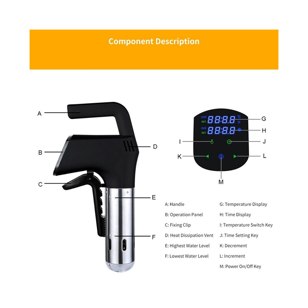 Slow Sous Vide Precision Cooker 1800W Waterproof Vacuum Powerful Immersion Circulator LCD Digital Timer Display Stainless Steel