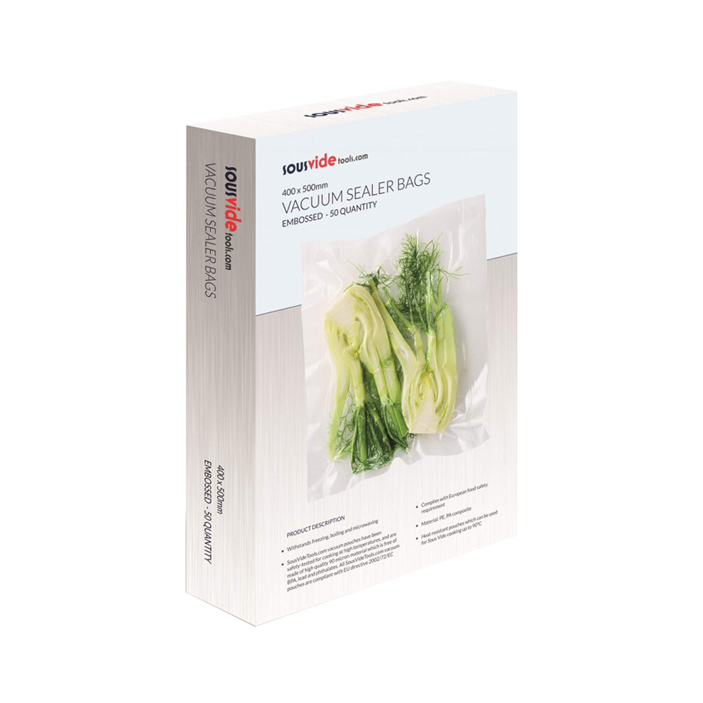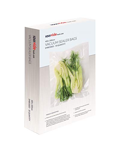 SousVideTools | Vacuum Sealer Bags | Pack of 50 | 40cm x 50cm | Embossed Food Storage | Sous Vide Cooking, Freezing & Microwaving | [SVT-06007]