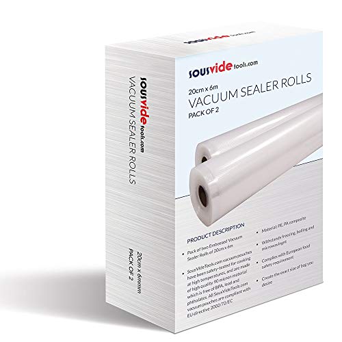 SousVideTools Vacuum Sealer Rolls Pack of 2 20cm x 600cm Embossed Plastic Food Storage Sous Vide Cooking, Boiling, Freezing & Microwaving BPA & PFA Free [Energy Class A++]