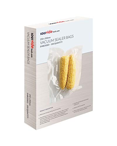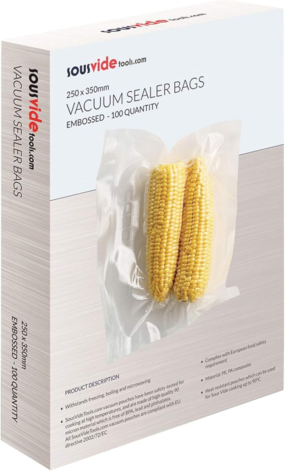 SousVideTools | Vacuum Sealer Bags | Pack of 100 | 25cm x 35cm | Embossed Food Storage | Sous Vide Cooking, Freezing & Microwaving | [SVT-06004]