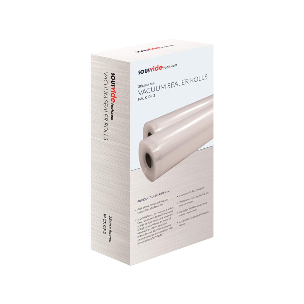 SousVideTools | Vacuum Sealer Rolls Pack of 2 | 28 cm x 6 m | Embossed Plastic Food Storage | Sous Vide Cooking, Boiling, Freezing and Microwaving