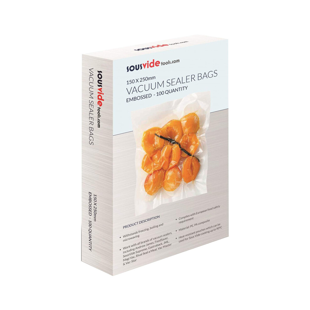 SousVideTools | Vacuum Sealer Bags | Pack of 100 | 15cm x 25cm | Embossed Food Storage | Sous Vide Cooking, Freezing & Microwaving | [SVT-06001]