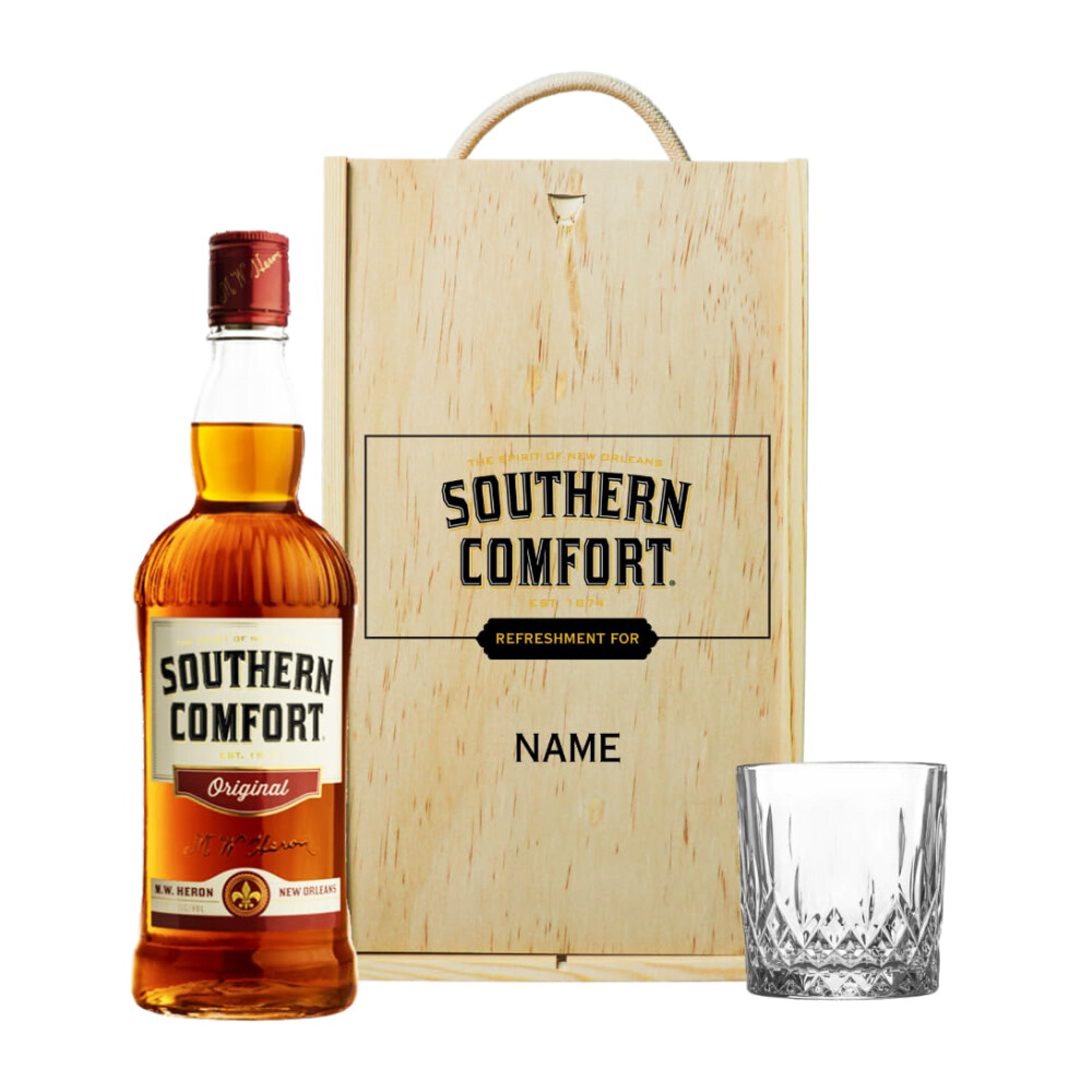 Personalised Southern Comfort Whiskey Gift Set with Glass ? 70cl (35% ABV) | Custom Wooden Presentation Box | Premium American Whiskey Liqueur Gift