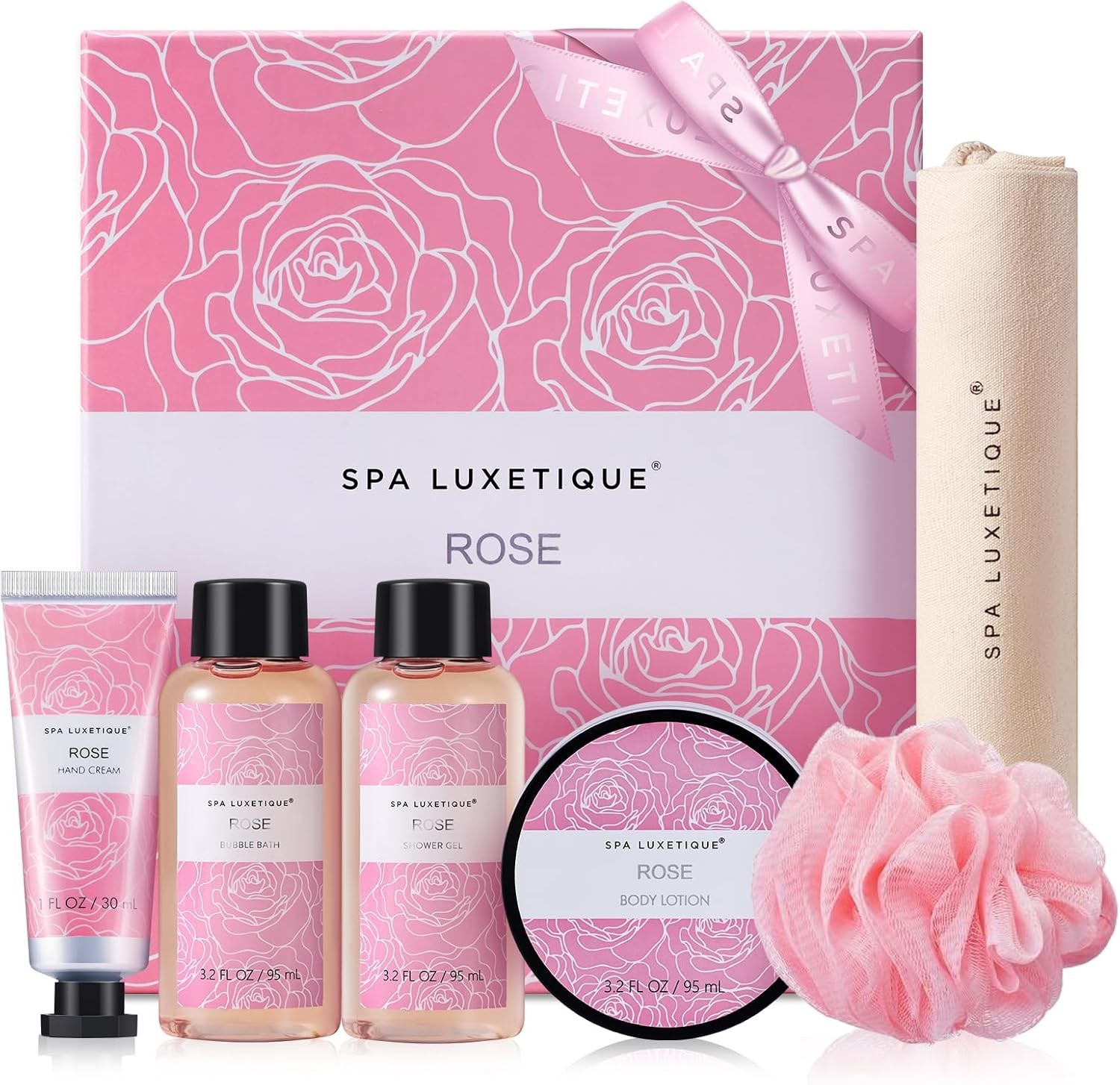 Spa Luxetique Spa Gift Set, Pampering Gifts for women, 6pcs Rose Bath Gift Set,