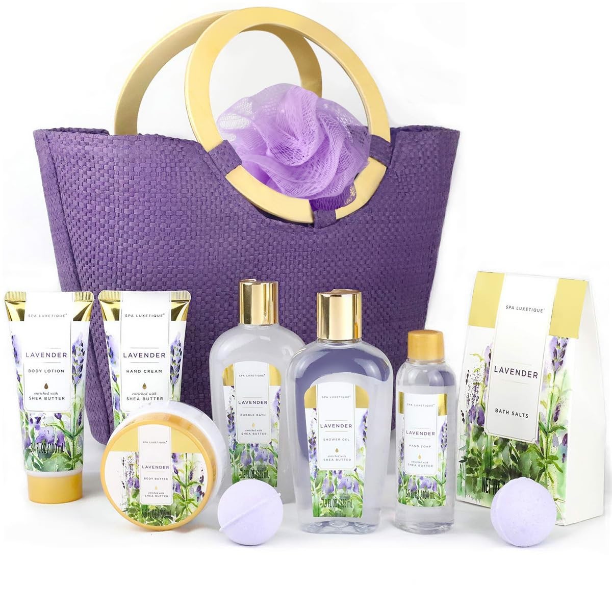 SPA LUXETIQUE Spa Gift Set, 6pcs Lavender Bath Set, Travel Pamper Box with Hand