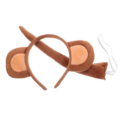 UPKOCH Monkey Ears Headband and Tail Set for Adults Comfortable Face Washing Spa Headband with Animal Costume Accessories for Birthday Parties Cosplay and Halloween Events