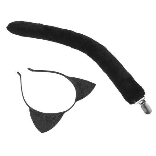 WRITWAA Cat Headpiece Headbands Halloween Costumes for Animal Themed Spa Headband Animal Hair Bands and Tail Adult Black