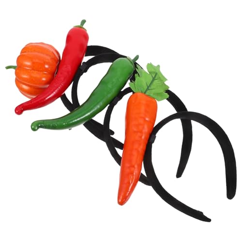 Ciieeo 4pcs 3D Vegetable Food Hair Hoops Set Pumpkin Carrot Chili Pepper Spa Skincare Headband Cosplay Costume Party Headwear for Women