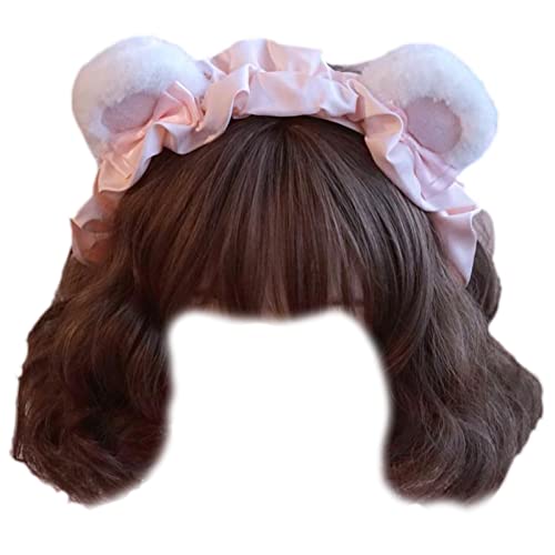 Hrtyvhin Delicate Bear Ear Headband Pleated Lace Shape Hair Hoop Spring Headpiece Cosplay Party For Woman Teens Plush Headbands For Woman For Washing Face Headbands For Spa Professional Headband With