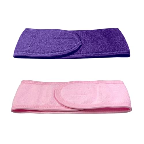 WESTEND CHOICE 2 Pack Spa Headband Facial Head Wrap Adjustable Makeup Terry Cloth Hairband for Washing Face Bath Shower Yoga Sport Women & Girls Hair band Makeup Headbands (Purple)