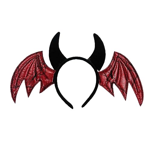 MALSSE Cute Bat Wing&Devil Horn Decor Hair Hoop Women Spa Wash Face Headband For Photoshoots Halloween Party Hair Accessories For Washing Face Adult