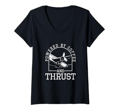 Women's Powered By Coffee and Thrust Funny Space Aerospace Engineers V-Neck T-Shirt