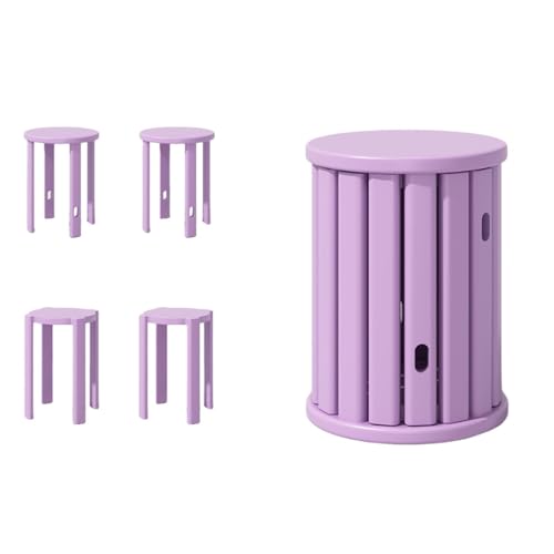 Multi-Color Wooden Stackable Stools Set of 4 4-in-1 Round Stacking End & Side Table, Versatile Stacking Stools for Dining/Kitchen/Bedroom/Living Room, Space-Saving & No Assembly Purple