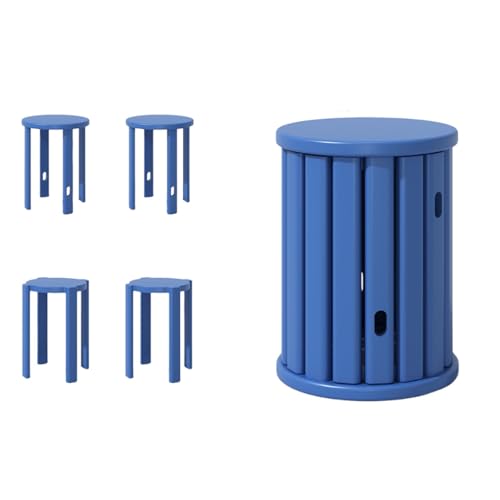 Multi-Color Wooden Stackable Stools Set of 4 4-in-1 Round Stacking End & Side Table, Versatile Stacking Stools for Dining/Kitchen/Bedroom/Living Room, Space-Saving & No Assembly Dark Blue