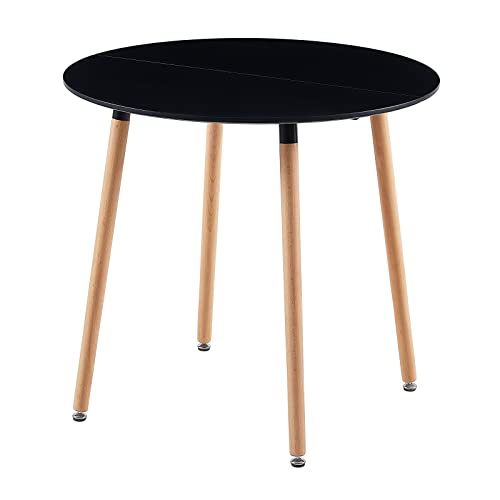 DORAFAIR Round Kitchen Tables for Dining Room 2-4 People Small Dining Table with Space Saving Design Solid Wooden Legs 80cm Diameter MDF Table Top 29 Inch Height(Black)
