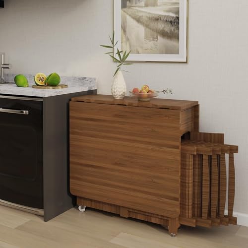Space Saving Dining Set with 4 Folding Chairs, Small Apartment Functional Drop Leaf Dinning Set for Kitchen, Living Room, Dining Room No Assembly Required