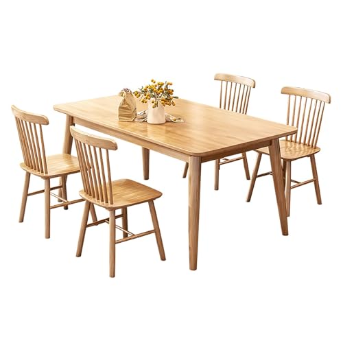 SHANGDAOYU Dining Table Set for 4,Solid Wood Furniture 5-Piece Kitchen Table, Space-Saving Dining Room Set,for Home, Dining Room, Small Space(140 * 80cm/55 * 31in)