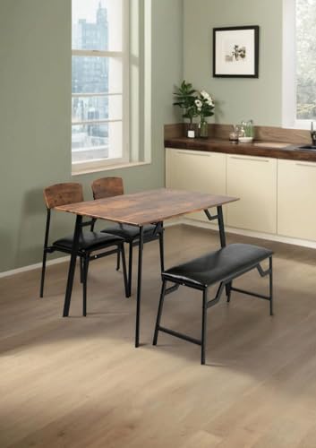 Space-Saving Dining Table Set for 4, Modern Wood Panels, Includes 2 Upholstered Chairs and Bench, Brown and Black