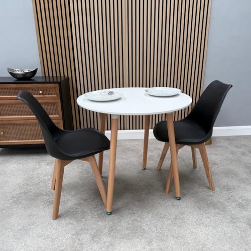 Life Interiors Dining Room Table Set for 2-80 cm Round Table & Dining Room Chairs Set of 2 with Cushions - PU Padded Seat w/Solid Wood Legs - Space Saving Modern Round Dining Set