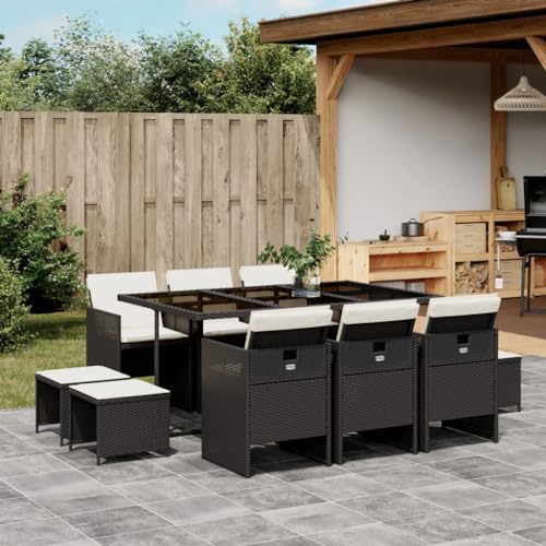 Teenpull 11-Piece Garden Dining Set with Cushions, Black Poly Rattan, Space Saving Outdoor Dining Set, Durable Patio Furniture Set for Balcony & Patio