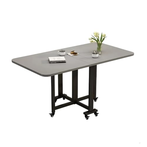 Gtzly Round Drop Leaf Kitchen Table with 6 Wheels, Versatile Collapsible Extension Dinner Kitchen Office Desk Table, Space Saving Folding Dining Table (Color : Grå, Size : 120CM/47.2IN)