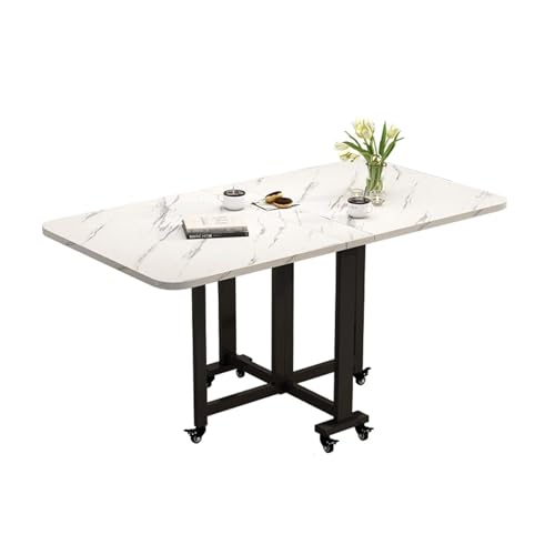 PurezmMoto Extendable Folding Dining Table with Wheels, Space Saving Kitchen Island Dining Table,Farmhouse Kitchen Table,Snack Tables Folding with Stand,Living Room Side Tables(White,120 * 80cm)