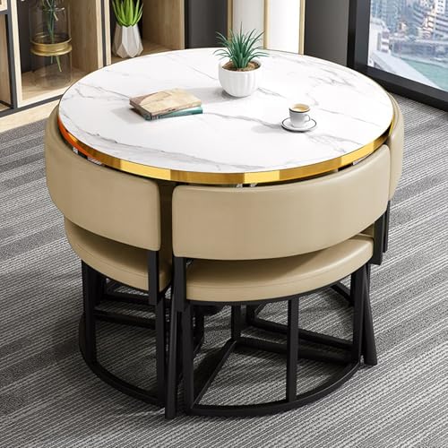 FREUPGU Office Table and Chair Set, Reception Negotiation Table, Small Conference Table, Space-Saving Furniture, Suitable for Lounge, Living Room, Kitchen(White)