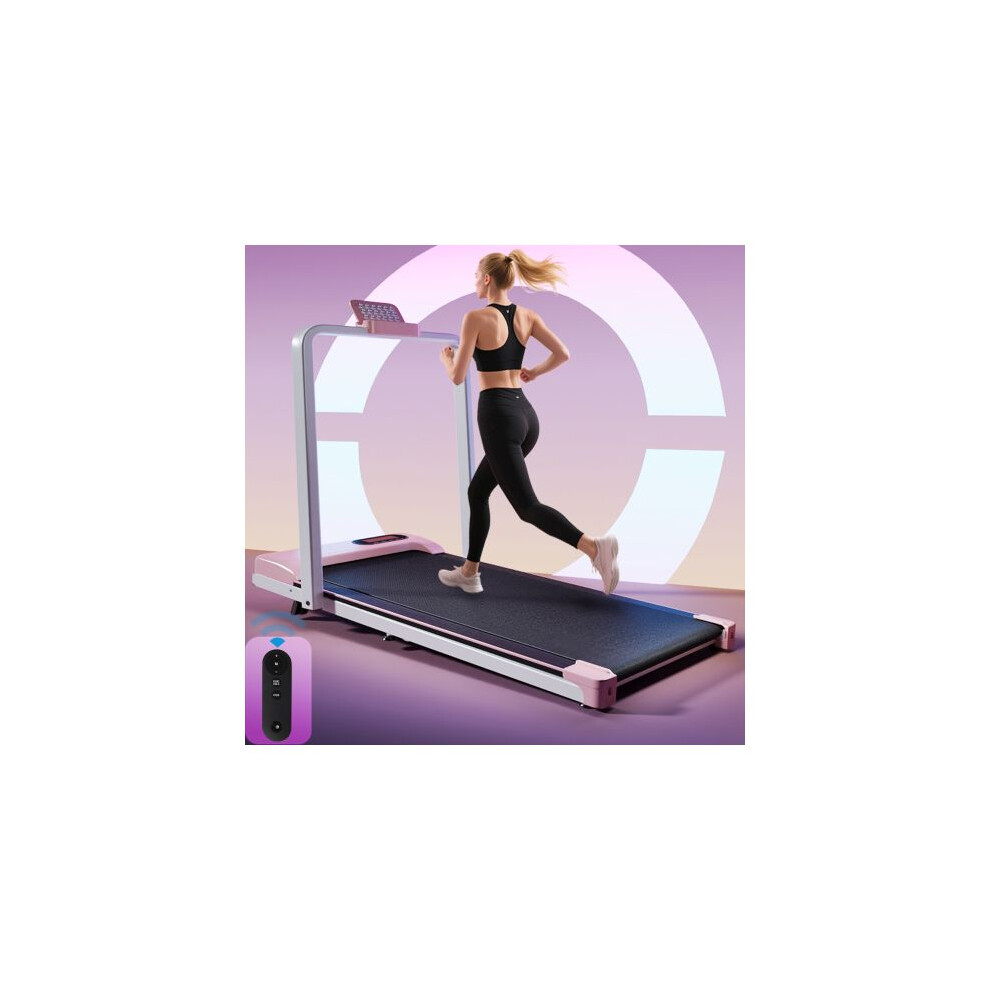 Merax Folding Treadmill with Handrail & Adjustable Incline, 1-10 km/h Speed, Low Noise Design, LED Display, Phone Holder, Remote Control, Transport Wheels – Space Saving Running Machine – Pink