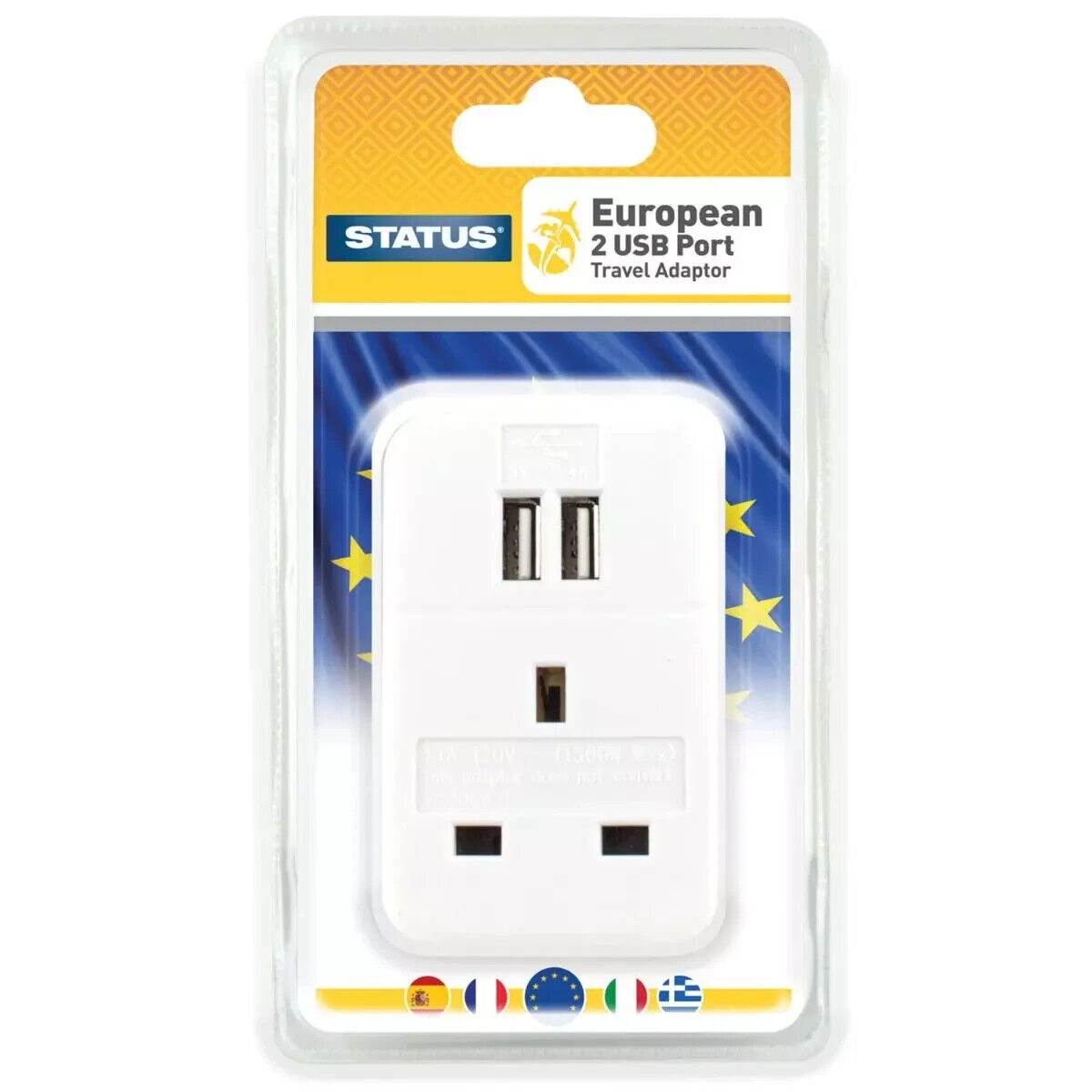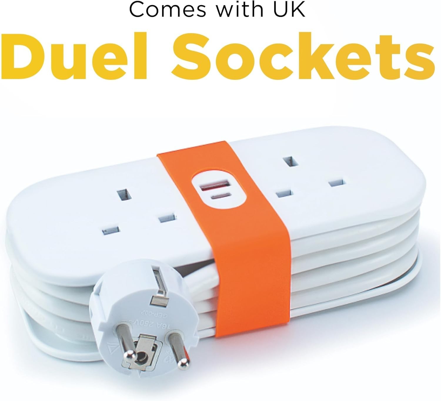 UK to Spain Travel Adapter 2 Sockets 1m Extension Lead Type F