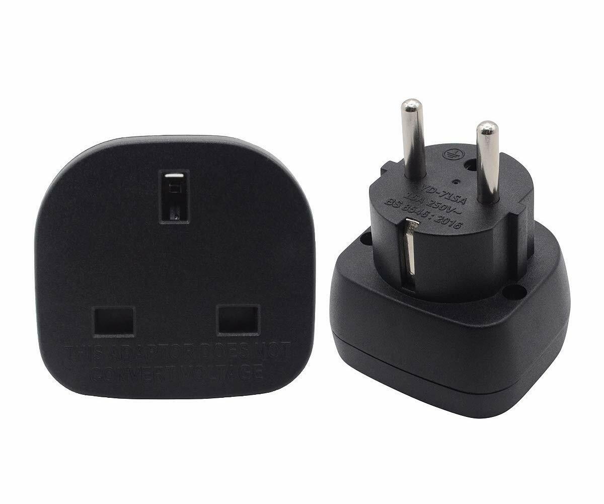 Pack of 2 Travel Adaptor | UK to European Plug Adapter Converter (Euro Type C, E, F) 3 Pin to 2 Pin Type G, EU Plugs for Europe Accessories,Italy,Cape Verde,Poland,Spain,Turkey,Greece,Bulgaria