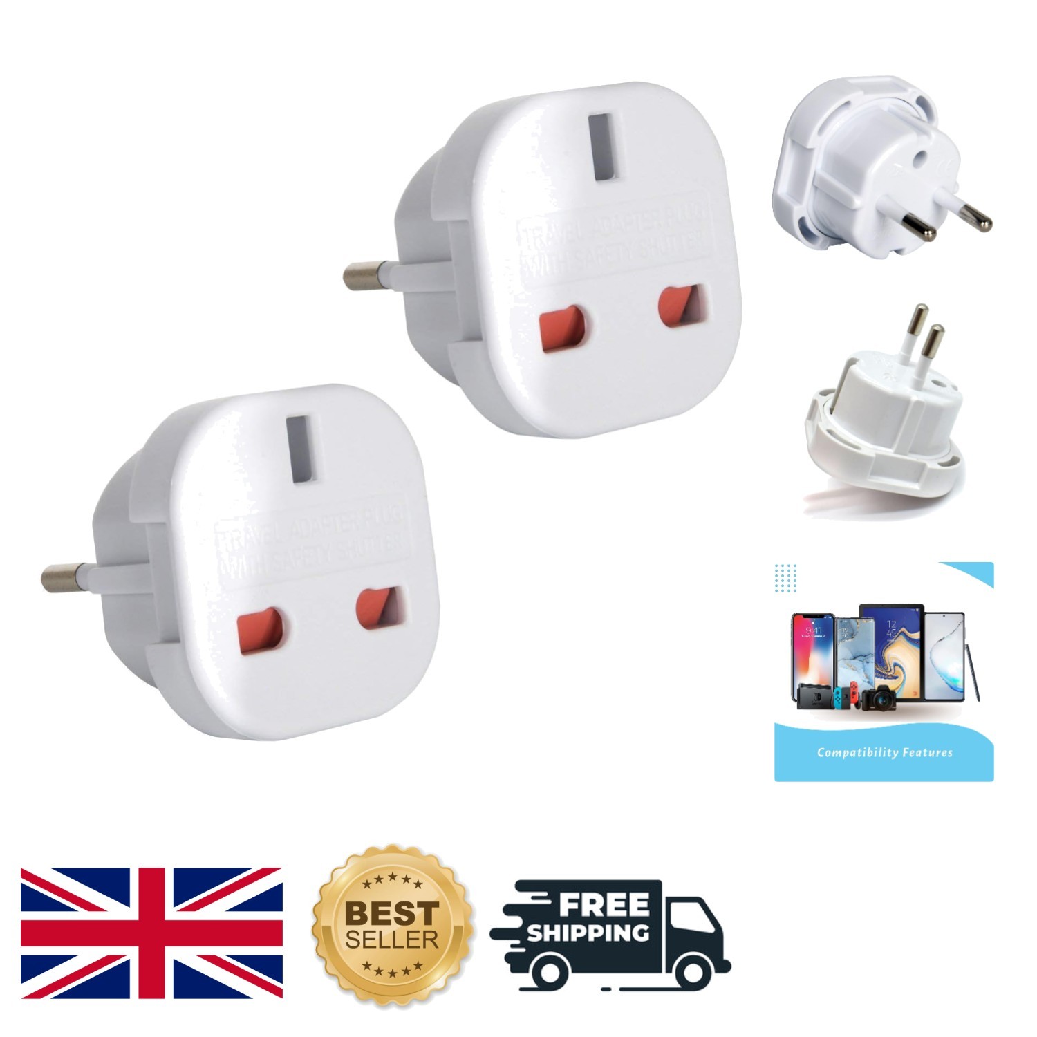 UK to Travel Adapter Set - Perfect for France, Spain & More (2-Pack)