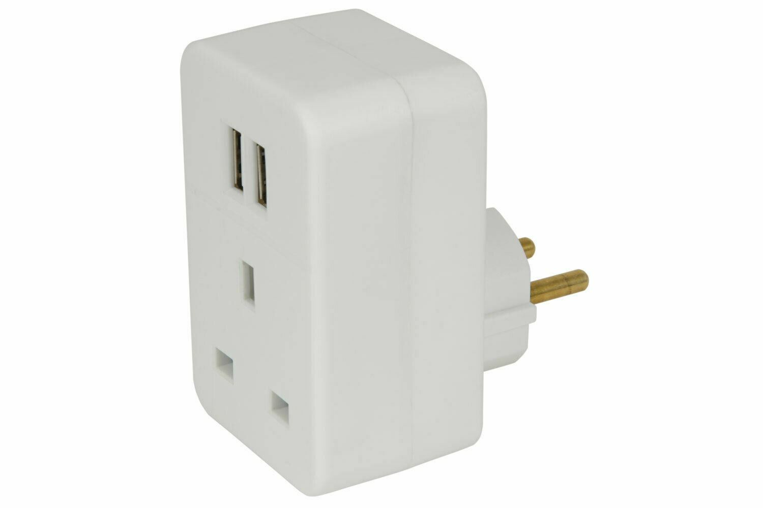 UK to EU European Plug with 2x USB Port Adapter Plug Adaptor France Spain Europe