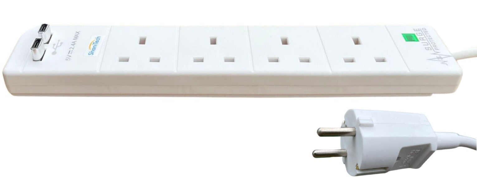 Travel Adaptor UK to Europe 4 Way Surge USB C Adapter Plug Germany Spain France