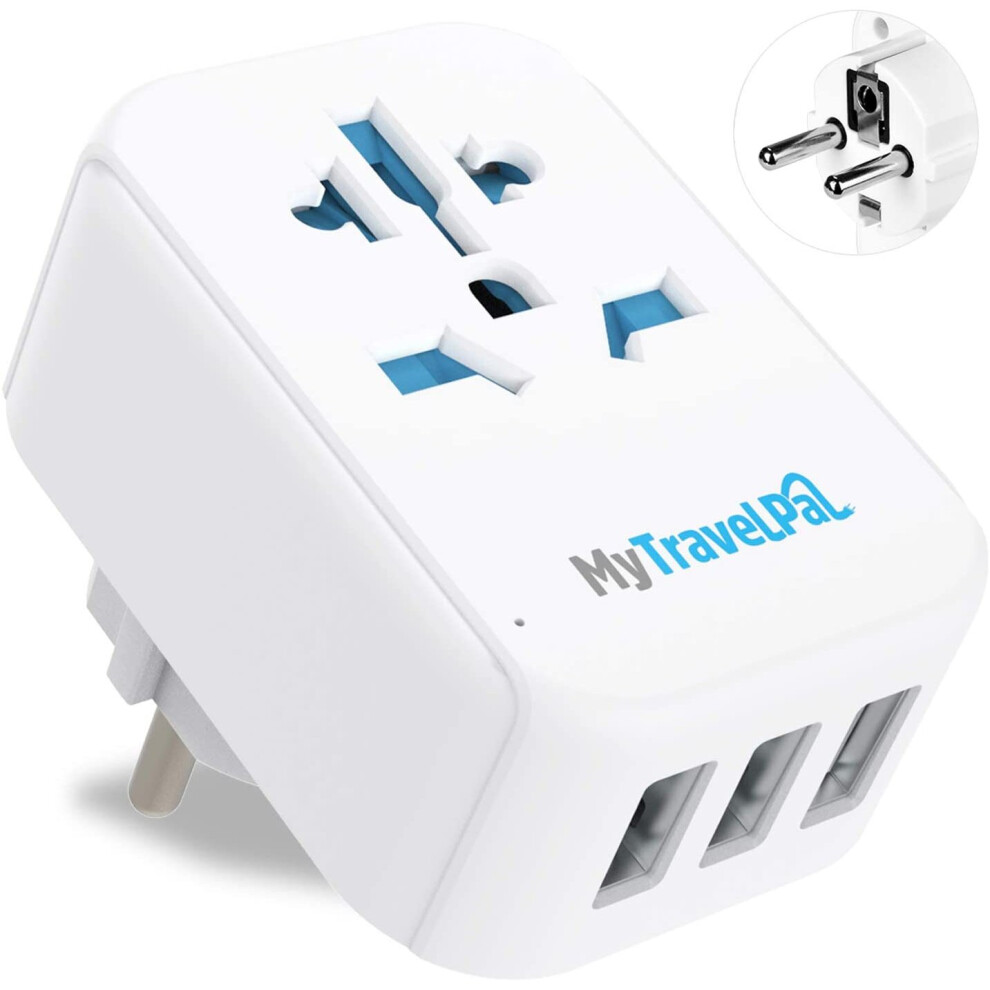 UK to Europe Travel Adapter With 3 USB Ports | MyTravelPal European Travel Adaptor Schuko Plug - EU Germany France Spain...