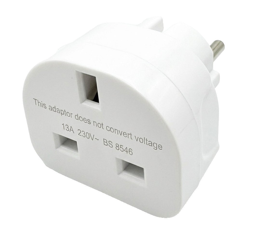 European to UK Plug Adaptor 1Pack, Travel Adapter Eu to UK Plug Adapter with 13A Fuse 2 Pin to 3 Pin Plug Adapter for Converter from France, Italy,Spain,Germany to UK White
